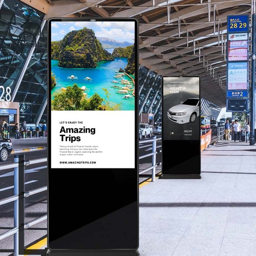 Large digital screens installed in public spaces like shopping centers, stadiums, and transportation hubs.